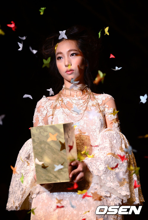 26일 오후 서울 용산 전쟁기념관에서 열린 '2012 추계 서울패션위크' 지춘희 디자이너 패션쇼에서 황신혜 딸 박지영이 화려하게 피날레를 장식하고 있다.