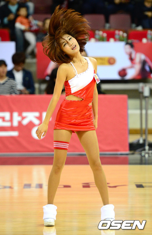 26일 오후 안양실내체육관에서 열린 KB 국민카드 2012-2013 프로농구 KGC인삼공사와 오리온스의 경기, 2쿼터 작전타임때 치어리더가 화려한 공연을 펼치고 있다.