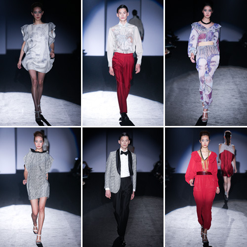 주로 사용된 소재는 광택이 나면서도 부드러운 실루엣을 낼 수 있는 실크와 속살을 가볍게 비추는 하늘거리는 오간자, 크레이프 등으로 우아하고 고혹적인 클래식한 페미닌 룩을 완성했다.
