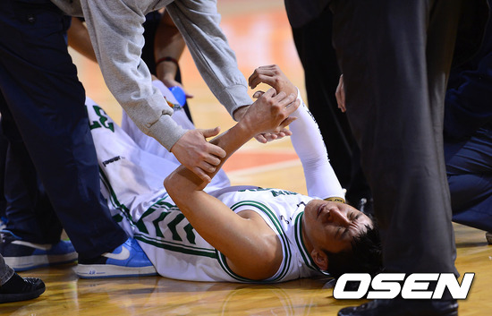 4쿼터 무릎의 통증으로 쓰러진 동부 박지현이 고통스러워하고 있다 / soul1014@osen.co.kr
