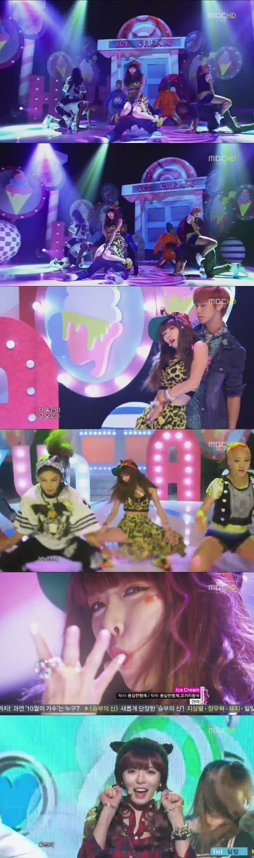 현아는 27일 오후 3시 55분 생방송된 MBC '쇼 음악중심'에 출연해 신곡 '아이스크림'을 비롯한 새앨범 수록곡 '풋사과'를 열창했다.