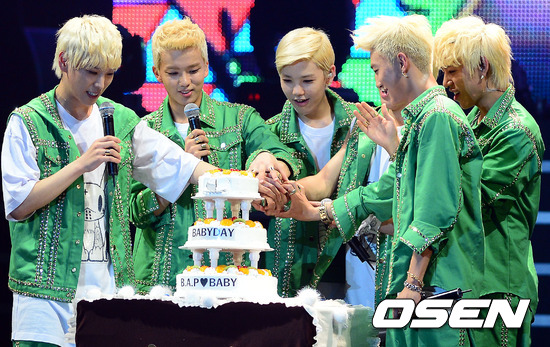27일 오후 고려대 화정체육관에서 진행된 그룹 B.A.P '팬클럽 창단식'에서 BAP 멤버들이 팬 클럽 창단기념 케이크 커팅을 하고 있다.