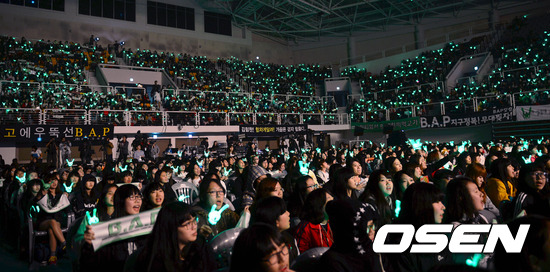 27일 오후 고려대 화정체육관에서 진행된 그룹 B.A.P '팬클럽 창단식'에 수 많은 팬들이 참석해 BAP 공연을 관람하고 있다.