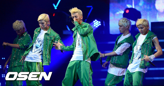 이들은 화려한 스터드 장식이 박힌 분홍색 수트를 입고 등장해 경쾌한 리듬에 맞춰 발랄한 댄스를 보여줬다. B.A.P는 '제발 좀 욱 좀 하지마', '화 좀 내지마 하지마' 등의 애교섞인 가사로 상큼함을 어필해 관객의 큰 환호를 받았다. / youngrae@osen.co.kr