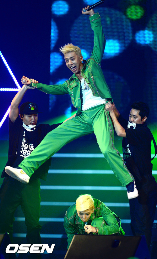 이들은 화려한 스터드 장식이 박힌 분홍색 수트를 입고 등장해 경쾌한 리듬에 맞춰 발랄한 댄스를 보여줬다. B.A.P는 '제발 좀 욱 좀 하지마', '화 좀 내지마 하지마' 등의 애교섞인 가사로 상큼함을 어필해 관객의 큰 환호를 받았다. / youngrae@osen.co.kr