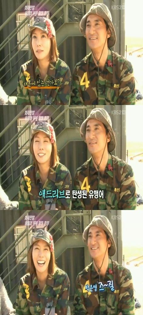 김정은은 "제 대사가 아니기 때문에 저는 촬영 안 할 때 스태프에게 즐겨 쓴다"고 말했고 신현준은 카메라를 응시하며 '연예가중계' 공동 MC로 활약 중인 박은영 아나운서를 향해 "박은영, 즈~질!"이라고 장난을 쳐 시청자들을 폭소케 했다.