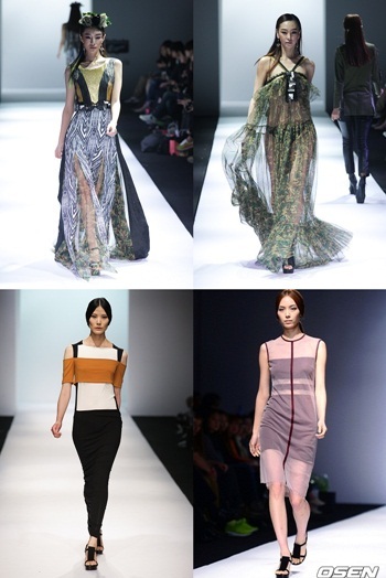 디자이너 곽현주는 각진 어깨, 카무플라주 패턴 등 의상 곳곳에 남성적인 요소들을 넣고 레이스, 시폰 등의 소재를 사용해 오히려 더욱 여성스러움이 느껴지는 룩들을 선보였다.