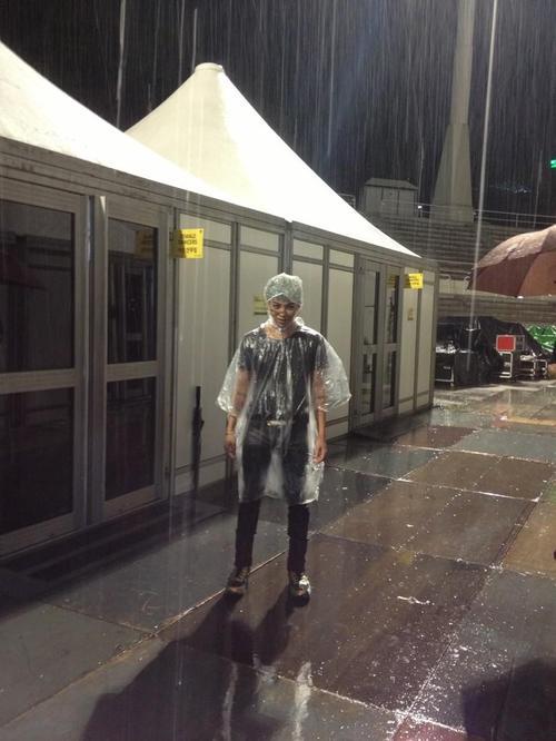 지드래곤은 지난 27일 자신의 트위터에 "싱잉 인 더 레인, 말레이시아로(Singing in the rain, Let's go Malaysia"라는 글과 함께 빗속에서 홀로 찍은 자신의 사진 한 장을 올렸다.