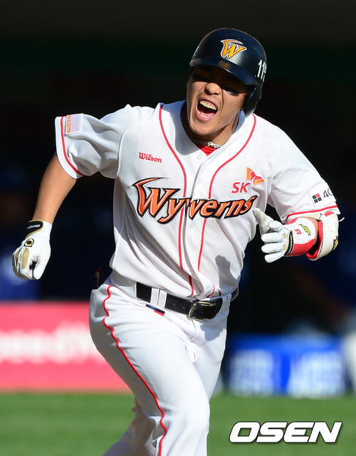 28일 오후 인천 문학구장에서 열린 2012 팔도 프로야구 삼성 라이온즈와 SK 와이번스의 한국시리즈 3차전, 2회말 2사 1,2루에서 SK 정근우가 내야땅볼로 물러나며 아쉬워하고 있다.