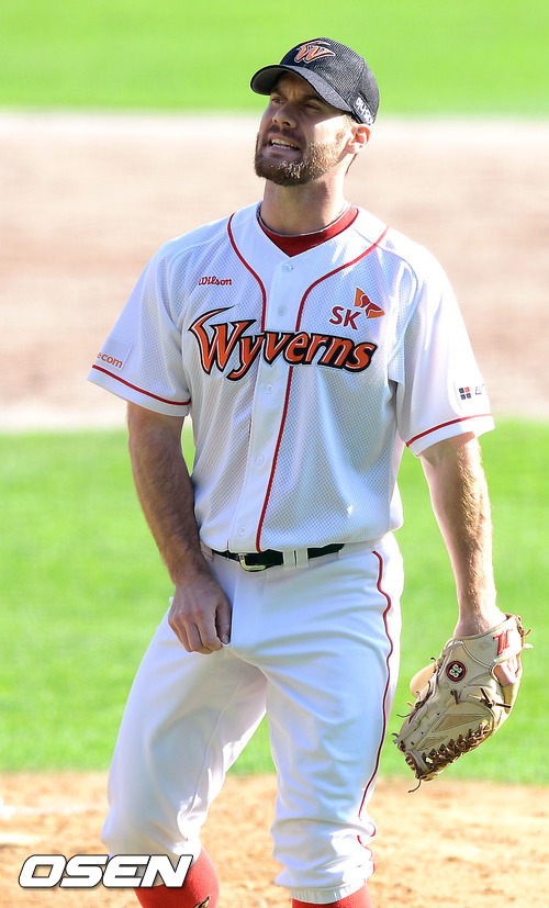 28일 오후 인천 문학구장에서 열린 2012 팔도 프로야구 삼성 라이온즈와 SK 와이번스의 한국시리즈 3차전, 3회초 만루 허용한 SK 선발투수 부시가 안타까운 표정을 짓고 있다