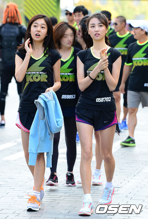 배우 백진희와 박하선이 출발선으로 이동하고 있다.