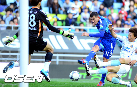 28일 오후 수원월드컵경기장에서 열린 '현대오일뱅크 K리그 2012' A그룹 37라운드 수원 삼성과 울산 현대의 경기, 후반 수원 스테보가 슈팅을 시도하고 있다.