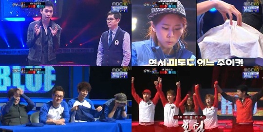 28일 방송된 MBC '우리들의 일밤-승부의 신'에서는 김수로를 팀장으로 시스타, 장우혁, 노홍철이 홍팀이 됐고, 탁재훈을 팀장으로 지상렬, 김나영, 뮤지가 청팀이 돼 게임을 했다.