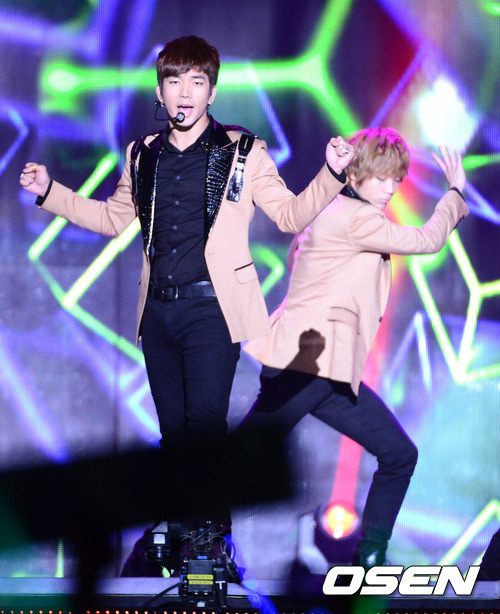 28일 오후 경상남도 창원광장 특설무대에서 열린 'K-POP 월드 페스티벌 2012 창원대회'에서 엠블랙이 멋진무대를 선보이고 있다.