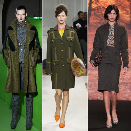 카무플라주(camouflage, 위장을 위한 얼룩덜룩한 군복 무늬)는 물론 군복의 대표적인 컬러 카키색을 사용한 의상이 런웨이를 점령했다. 제복의 느낌을 그대로 살린 롱코트에 골드 버튼, 퍼 카라 등과 같은 디테일을 더해 보다 세련되고 감각적으로 재해석됐다.
