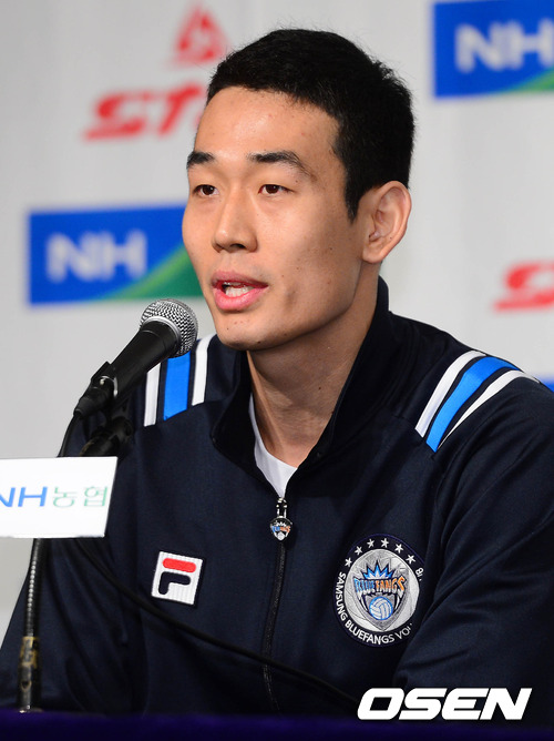 29일 오전 서울 여의도 63컨벤션센터에서 열린 'NH농협 프로배구 2012-2013' 남자부 미디어데이에서 삼성화재 고희진이 취재진들과 질의응답 시간을 갖고 있다.