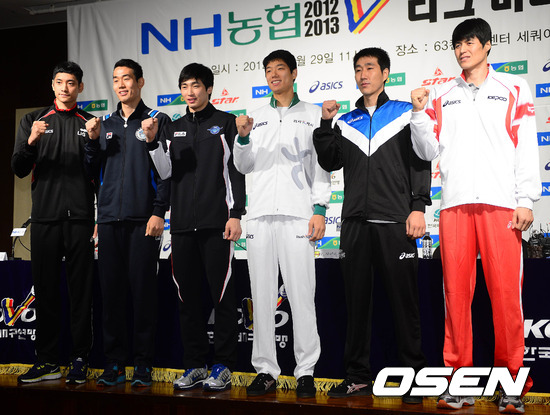 한국배구연맹(KOVO)은 29일 오전 서울 영등포구 여의도동 63컨벤션센터 세쿼이아룸에서 NH농협 2012-2013 V리그 남자부 미디어데이를 개최했다. 이날 미디어데이에는 남자부 6개 팀의 감독과 각 팀 주장, 외국인 선수가 참석해 리그 개막을 앞둔 포부와 각오를 전했다.