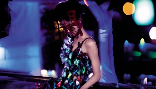이 날 촬영중에 내린 비는 투명 나비 프린트 우산과 어우러져 신비한 분위기를 더했다는 후문이다.