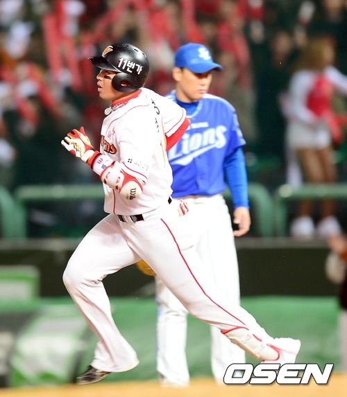 29일 오후 인천 문학구장에서 열린 '2012 팔도 프로야구' SK 와이번스와 삼성 라이온즈의 한국시리즈 4차전 4회말 1사 최정이 백투백 홈런을 치고 베이스를 돌고 있다.