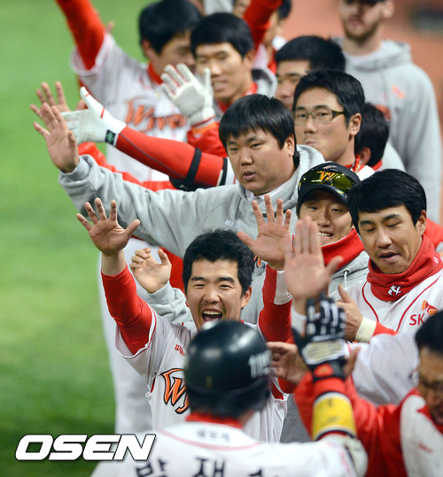 지난 28일 열린 3차전에서 SK는 대역전극을 이뤄냈다. 1-6으로 끌려가던 경기를 12-8로 뒤집었다. 삼성의 일방적인 리드로 흐르던 시리즈 흐름에 제동을 걸었다. 또 철옹성 같던 삼성 불펜을 두들겼다는 측면에서 1승 이상의 의미가 있었다.