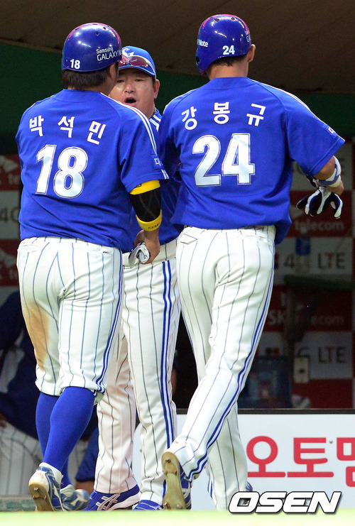 더불어 강봉규 역시 한국시리즈 들어 처음으로 선발 라인업에 이름을 올렸다. 류 감독은 "6번타자는 좌완에 강한 강봉규가 나간다"고 경기 전 밝혔다. 시즌 타율 2할5푼5리, 그렇지만 좌완을 상대로 2할6푼7리로 조금 더 강했던 강봉규는 특히 김광현을 상대로 3타수 2안타로 강세를 보였다.