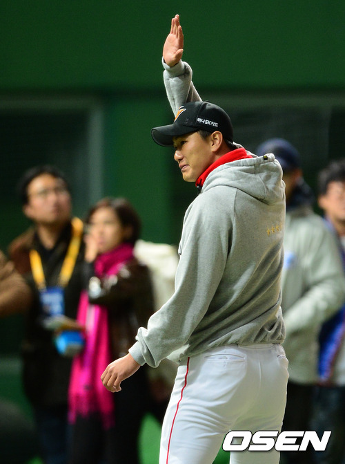 김광현이 4차전 MVP로 선정되며 팬들에게 인사를 하고 있다. /jpnews@osen.co.kr