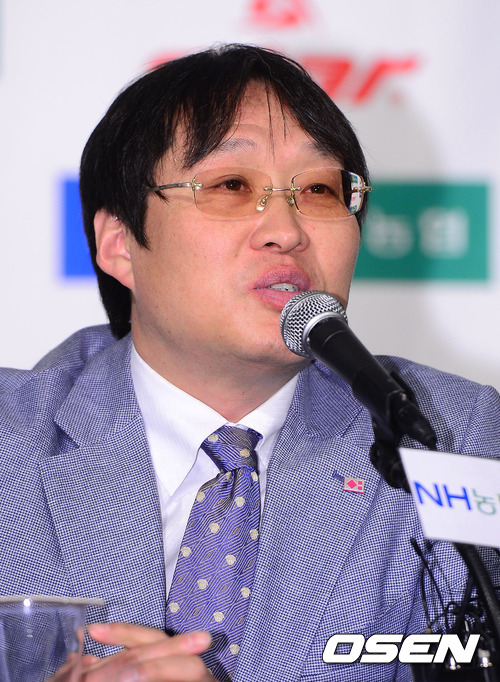 이날 V리그 여자부 미디어데이에 참석한 차해원 흥국생명 감독이 출사표를 던지고 있다.