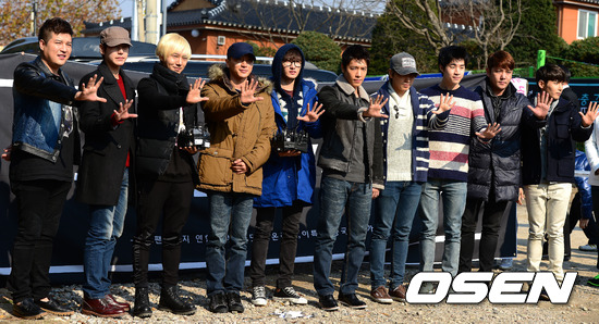 슈퍼주니어가 취재진을 향해 인사를 하고 있다.