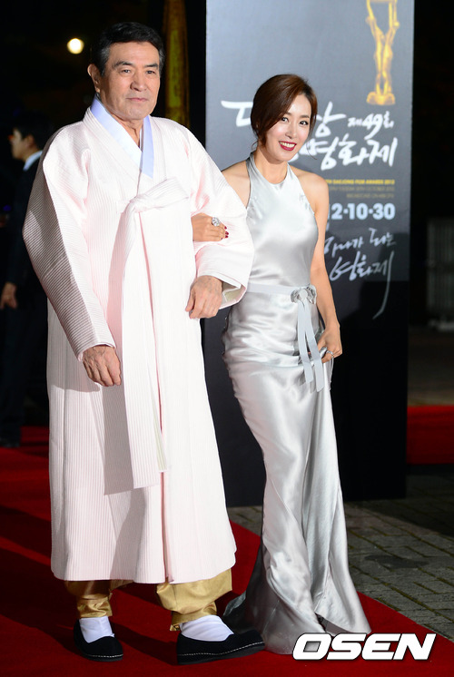 30일 오후 서울 여의도 KBS홀에서 열린 '제49회 대종상영화제'시상식에 참석한 남궁원 문정희가 레드카펫을 밟고 있다. 이날 시상식 남우주연상에는 최민식('범죄와의 전쟁;나쁜놈들 전성시대'), 이벙헌('광해:왕이 된 남자'), 김명민('페이스메이커'), 황정민('댄싱퀸'), 안성기('부러진 화살')가 후보에 올랐으며, 여우주연상은 조민수('피에타'), 김고은('은교'), 엄정화('댄싱퀸'), 황정민('밍크코트'), 임수정('내 아내의 모든 것') 등이 후보를 장식했다. 신드롬을 일으키며 평단과 대중의 찬사를 받은 최민식, 천만 관객을 넘게 동원한 '광해'의 주역 이병헌, 그리고 제69회 베니스영화제 시상식에서 아깝게 여우주연상을 놓친 조민수, 파격적인 연기 변신을 보여준 임수정 등 누구 하나 영예의 주인공이 될 만한, 만만치 않은 경쟁 상대들이다. 작품상에는 '피에타', '부러진 화살', '광해:왕이 된 남자', '은교', '도가니' 등 5편이 선정됐다. 신인여우상은 배수지('건축학개론'), 고아라('페이스메이커'), 유해정('다슬이'), 강은진('피에타') 김고은('은교') 등이 후보로 선정됐고, 신인남우상 후보에는 조정석('건축학개론'), 김성균('범죄와의 전쟁' '이웃사람'), 우홍('피에타'), 최다니엘('공모자들') 등이 올라 경쟁을 펼친다. / baik@osen.co.kr