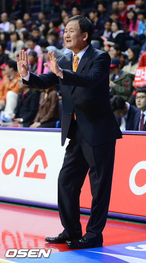 30일 오후 고양 실내체육관에서 열린 'KB 국민카드 2012-2013 프로농구' 고양 오리온스와 울산 모비스의 경기, 1쿼터 모비스 유재학 감독이 선수들에게 작전지시를 하고 있다.
