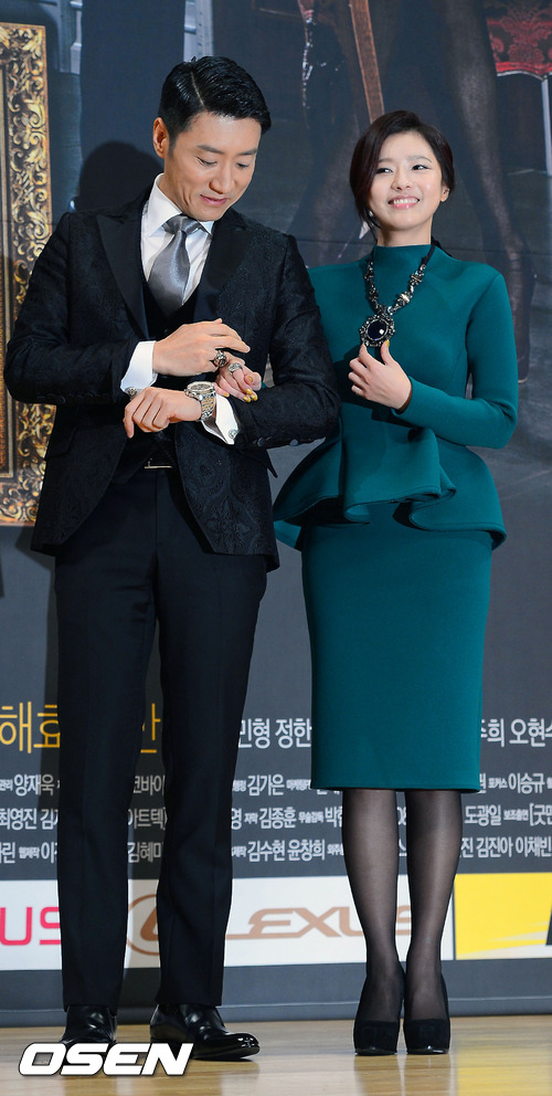 31일 오후 SBS 목동 사옥에서 열린 SBS 새 월화드라마 ‘드라마의 제왕’(극본 장항준 이지효, 연출 홍성창)의 제작발표회에서 김명민과 오지은이 포토타임을 갖고 있다.