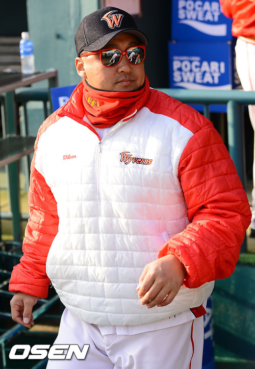 31일 오후 서울 잠실구장에서 열린 '2012 팔도 프로야구' 삼성 라이온즈와 SK 와이번스의 한국시리즈 5차전, 경기에 앞서 SK 조인성이 훈련을 나서고 있다.