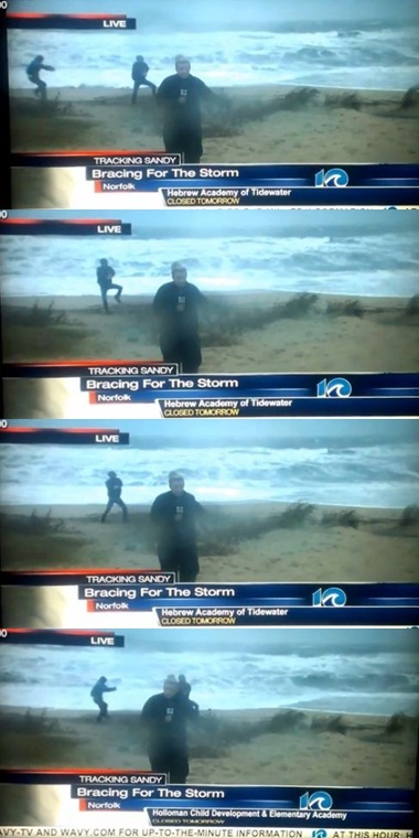 31일(한국 시간) 미국의 한 지역 방송사는 재난 상황을 전하기 위해 샌디가 들이닥친 현장을 찾아 속보를 전하던 도중 싸이의 말춤 때문에 뜻하지 않은 방송 사고를 겪어야 했다.