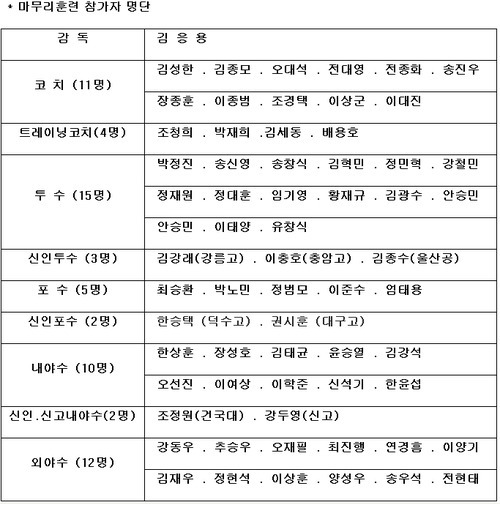 한편, 한화이글스는 2012시즌 마무리훈련을 한화이글스 서산 전용구장에서 11월2일부터 29일까지 28일간 실시하며 참가인원은 감독을 포함한 코치진 15명과 선수49명이 참가하며 마무리훈련에 참가하지 않는 선수들은 대전구장에서 자율훈련을 할 예정이다.