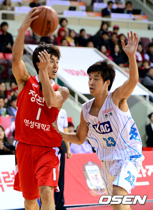 31일 오후 안양실내체육관에서 열린 'KB 국민카드 2012-2013 프로농구' 안양 KGC와 전주 KCC의 경기 2쿼터 KGC 김태술이 KCC 박경상의 수비를 피해 패스를 시도하고 있다.