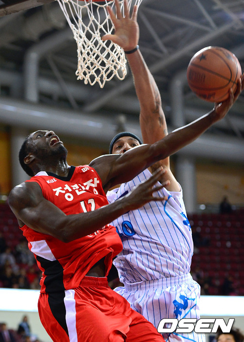 31일 오후 안양실내체육관에서 열린 'KB 국민카드 2012-2013 프로농구' 안양 KGC와 전주 KCC의 경기 2쿼터 KGC 파틸로가 리버스 레이업을 시도하고 있다.