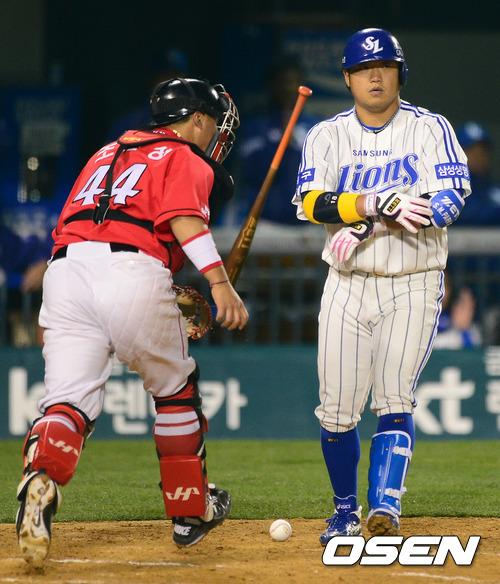 31일 오후 서울 잠실구장에서 열린 2012 팔도 프로야구 한국시리즈 5차전, 6회말 1사 1루에서 삼성 박석민이 볼넷으로 출루하고 있다.