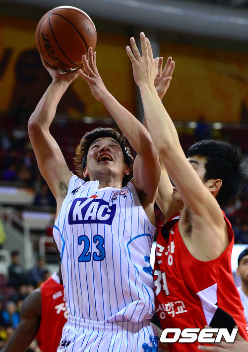 31일 오후 안양실내체육관에서 열린 'KB 국민카드 2012-2013 프로농구' 안양 KGC와 전주 KCC의 경기 4쿼터 KCC 박경상이 골밑 슛을 시도하고 있다.