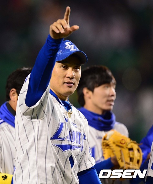 경기 종료후 이승엽이 관중석을 향하여 손짓을 하고 있다./ ajyoung@osen.co.kr