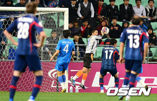 후반 울산 김영광이 부뇨드코르의 슛을 막아내고 있다.