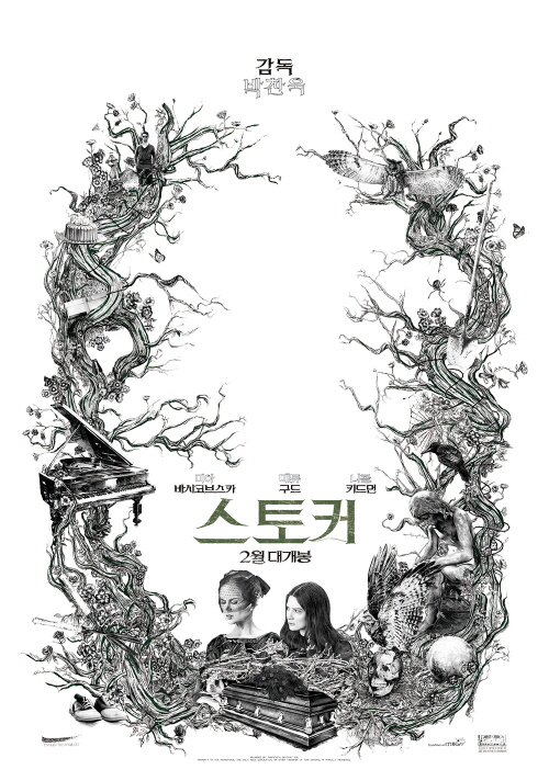 연필로만 스케치 된 이번 포스터는 그 자체로 예술적 가치를 지닐 만큼 높은 완성도를 자랑한다. 아버지의 장례를 치르는 인디아 스토커(미아 바시코브스카)와 엄마 이블린 스토커(니콜 키드먼), 그리고 그들을 지켜보는 찰리 삼촌(매튜 구드) 등 주인공들을 비롯해 영화 속에서 중요한 의미를 담고 있는 사물들이 뒤엉켜 기묘하고 아름다운 나무줄기를 이룬다.