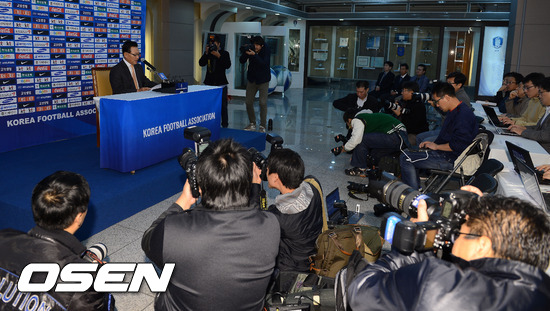 1일 오전 서울 신문로 축구회관 1층에서 열린 조중연 대한축구협회 회장 기자회견에서 조중연 회장이 모두 발언을 하고 있다.