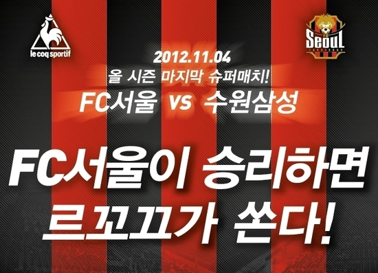 먼저 '노 세일' 브랜드인 르꼬끄에서 FC서울의 승리를 기원하기 위해, 수원과의 경기에서 승리할 경우 르꼬끄 상품을 10%(1골차 승리), 20%(2골차 승리), 30%(3골차 이상 승리) 할인된 가격에 판매하는 이벤트를 펼칠 예정이다.