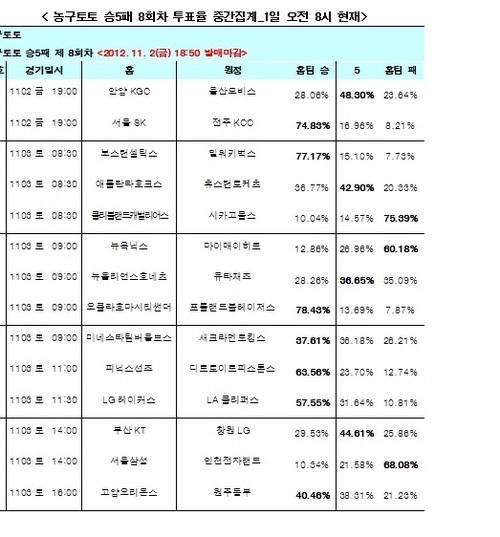 농구토토 승5패 8회차 투표율 중간 집계 결과