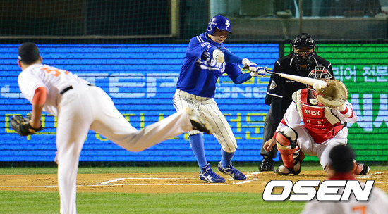 1일 오후 서울 잠실구장에서 열린 '2012 팔도 프로야구' 삼성 라이온즈와 SK 와이번스의 한국시리즈 6차전 경기 1회초 무사 1루 정형식이 내야안타를 치고 있다.