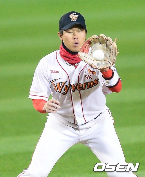1일 오후 서울 잠실구장에서 열린 '2012 팔도 프로야구' 삼성 라이온즈와 SK 와이번스의 한국시리즈 6차전 경기, 2회초 박석민 3루앞 땅볼때 SK 최정 3루수가 포구하며 아웃처리 시키고 있다.
