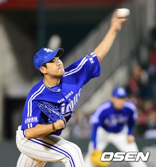 1일 오후 서울 잠실구장에서 열리는 '2012 팔도 프로야구' 삼성 라이온즈와 SK 와이번스의 한국시리즈 6차전 삼성 선발 장원삼이 힘차게 공을 던지고 있다.