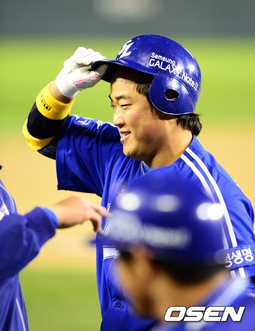 1일 오후 서울 잠실구장에서 열리는 '2012 팔도 프로야구' 삼성 라이온즈와 SK 와이번스의 한국시리즈 6차전 삼성 4회초 박석민이 투런 홈런을 치고 팬들에게 인사하고 있다.