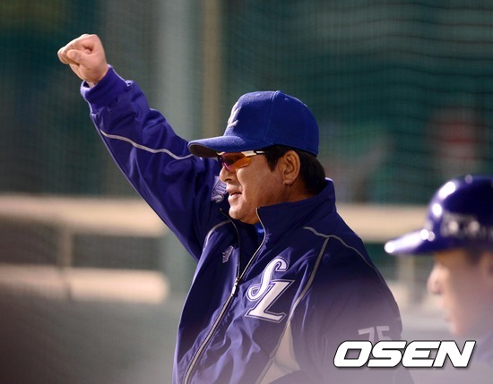 1일 오후 서울 잠실구장에서 열리는 '2012 팔도 프로야구' 삼성 라이온즈와 SK 와이번스의 한국시리즈 6차전 삼성 4회초 2사 1,2루 배영섭의 적시타가 터지자 류중일 감독이 주먹을 불끈 쥐고 있다.