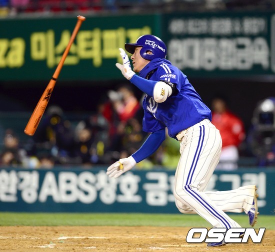 1일 오후 서울 잠실구장에서 열리는 '2012 팔도 프로야구' 삼성 라이온즈와 SK 와이번스의 한국시리즈 6차전 삼성 4회초 2사 1,2루 배영섭이 적시타를 치고 있다.